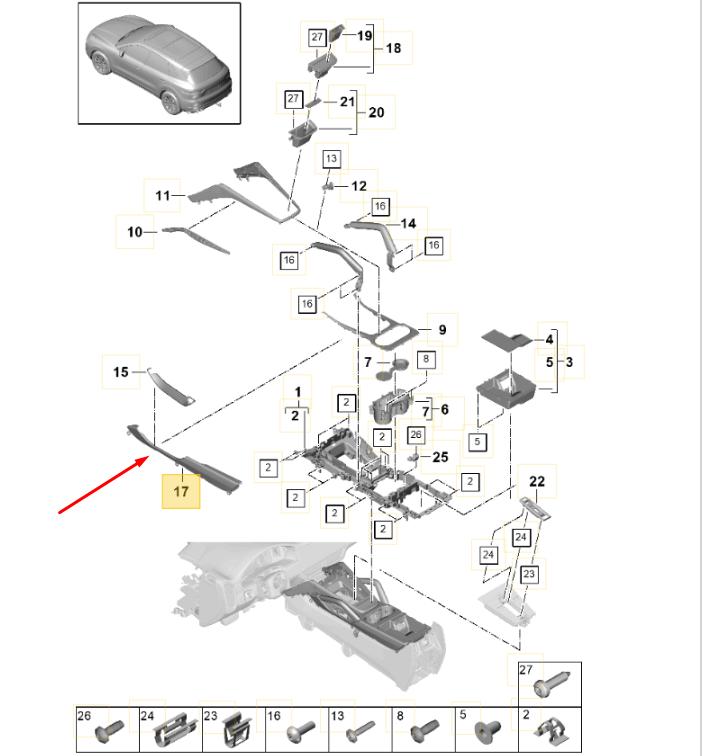 PRODUTO: Moldura Lateral Direita Console Porsche Cayenne